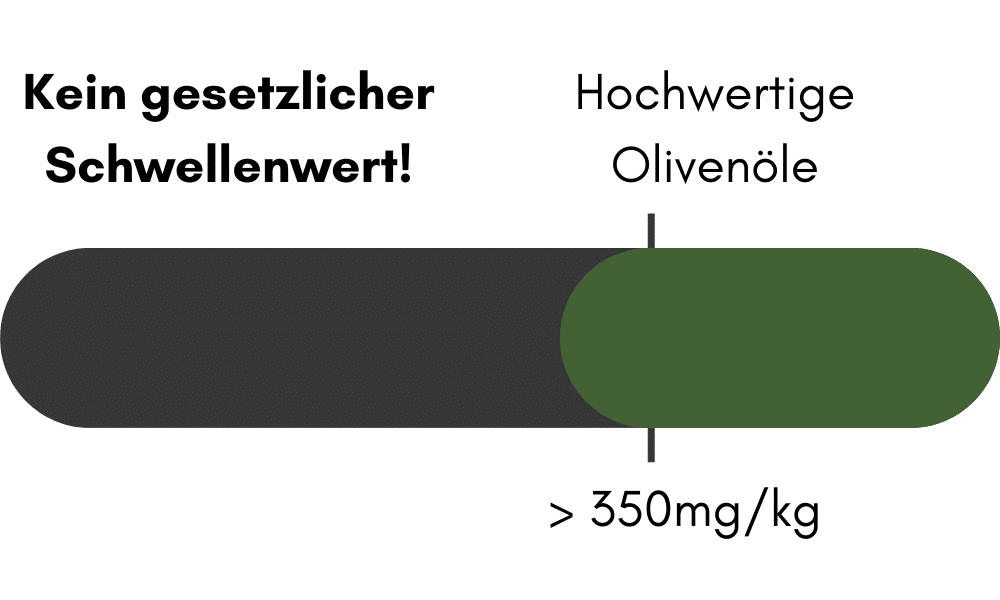 Der Polyphenolgehalt unserer Öle liegt etwa zwischen 400 – 900 mg/kg, was 5-10x höher ist als bei industriellen Supermarktölen.